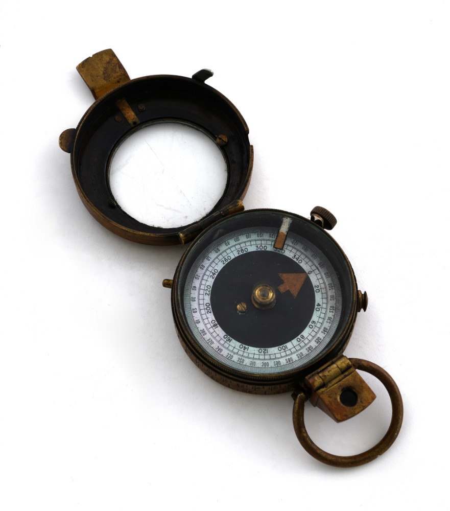 Bussola prismatica militare Verner’s Pattern VIII, cassa in ottone,