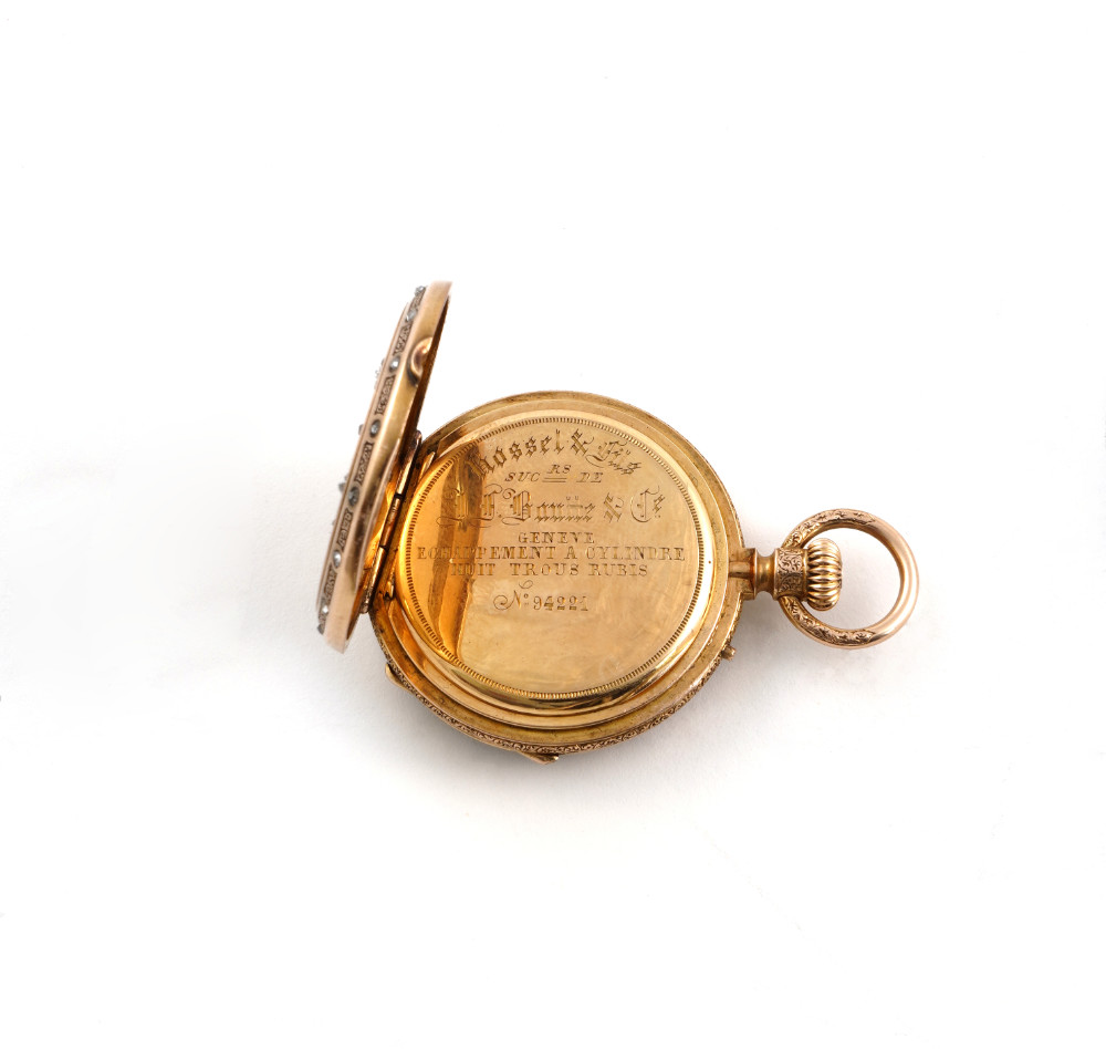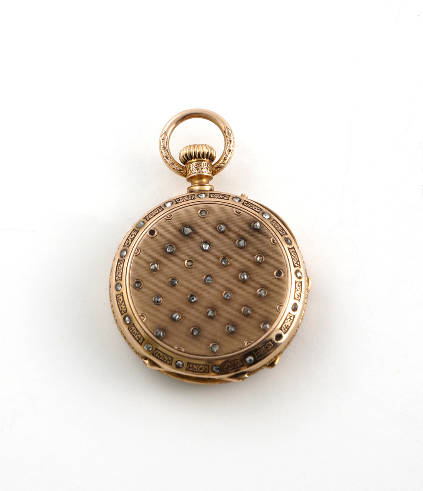 Orologio da persona, cassa in argento cesellata e smalto…