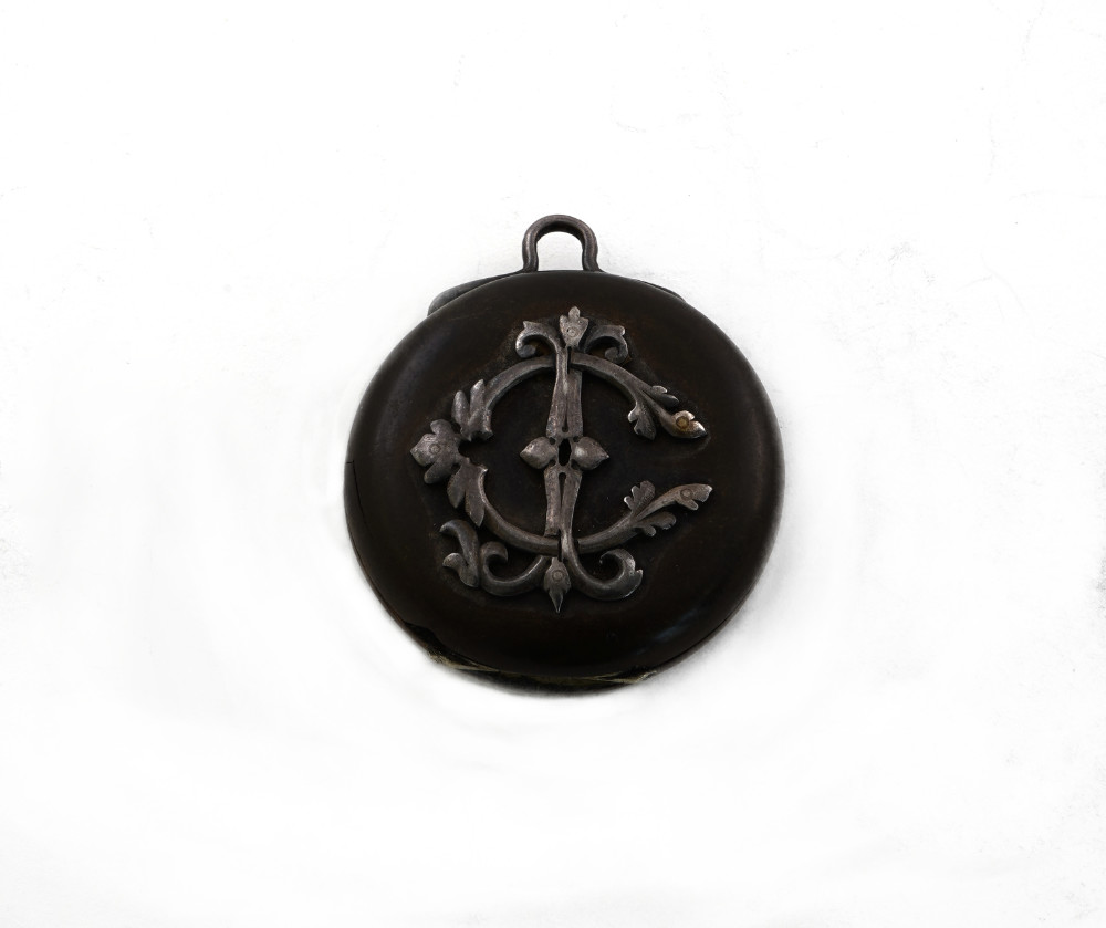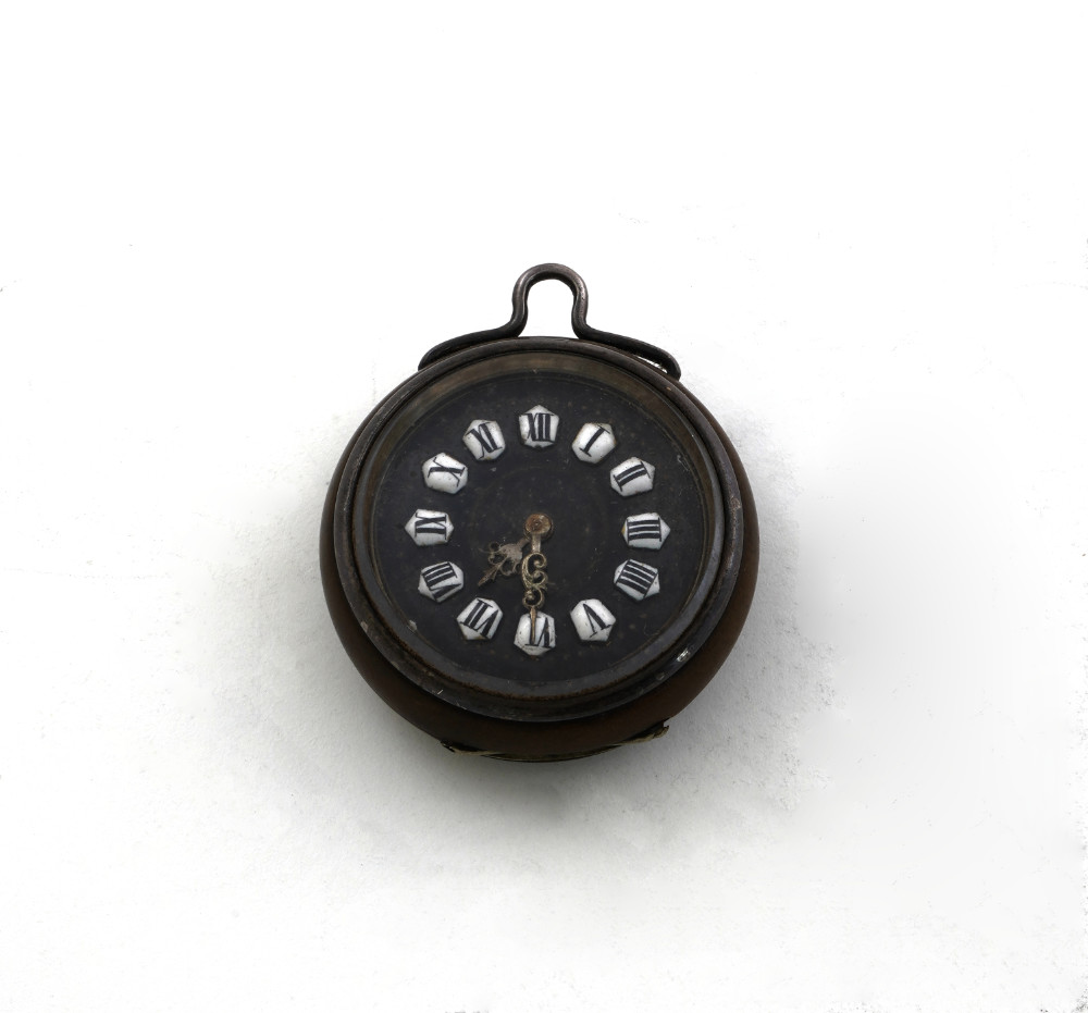 Orologio da tasca, movimento con scappamento a cilindro, cassa lignea con monogramma in argento,