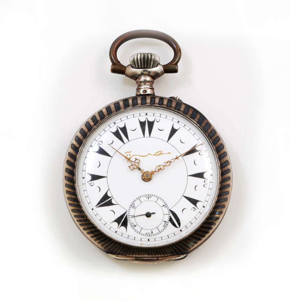 Orologio da tasca, cassa in argento, quadrante turco ottomano, movimento con scappamento ad ancora,